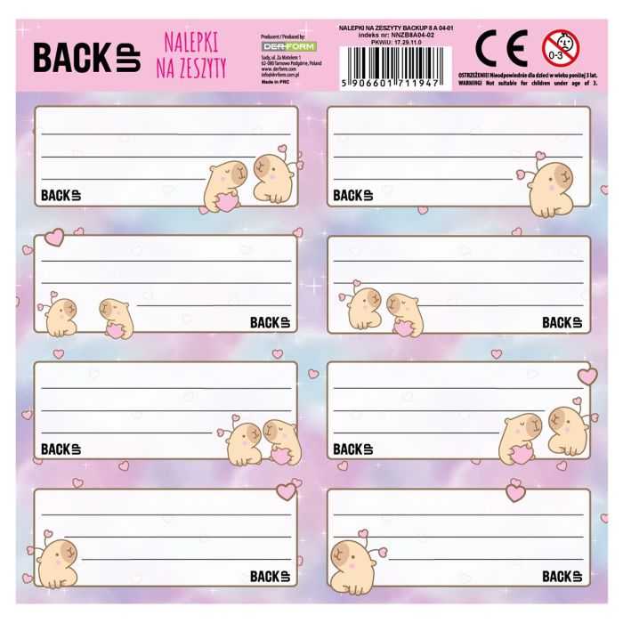 Derform » Backup » Artykuły papiernicze i piśmiennicze » NALEPKI NA ZESZYTY BACKUP 8 A 04 [opakowanie=25szt]