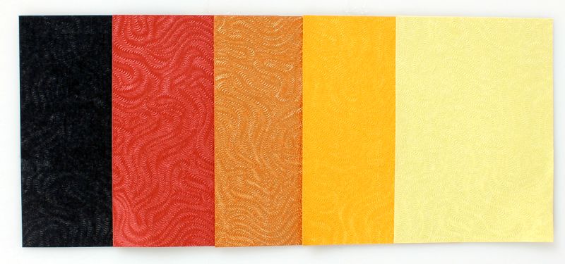 Ozdobne, tłoczone papiery 120 g barwione w masie. Każde opakowanie zawiera 10 arkuszy w 5 kolorach (po 2 arkusze z koloru). Struktura: centipede, wymiar arkusza 20 x 20 cm.