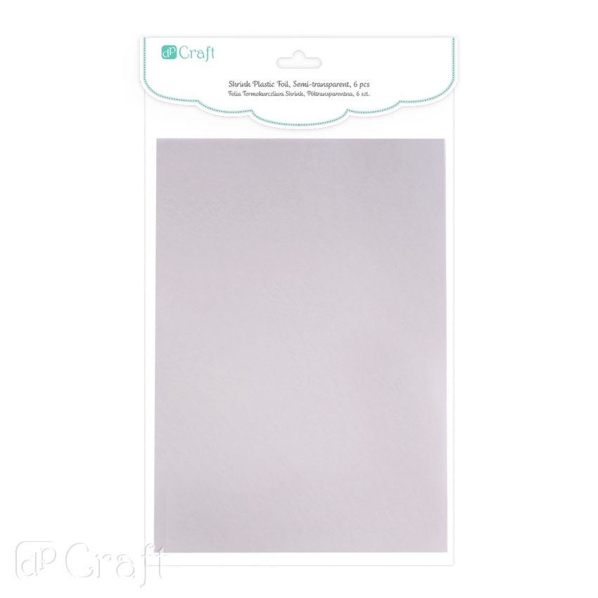 Folia termokurczliwa to doskonała baza do tworzenia oryginalnych elementów i dodatków, które mogą zostać wykorzystane w projektach typu cardmaking, scrapbooking, home decor, do tworzenia biżuterii, dodatków fashion (przypinek, zawieszek, breloczków, itp.) i wielu innych. Dzięki folii możesz stworzyć dowolne wzory, we wszystkich kolorach! Ty decydujesz jak będzie wyglądał twój element i możesz go stworzyć w kilka minut! Jak to zrobić?1. Folie kolorowe są z jednej strony matowe a z drugiej błyszczące. Przeszlifuj delikatnie matową stronę folii drobnoziarnistym papierem ściernym – dzięki temu zwiększysz przyczepność tuszów, farb, pisaków, kredek, mgiełek, itp. 2. Odbij wybrany stempel lub narysuj swój własny projekt.3. Wytnij nożyczkami przygotowany wzór. Do wycinania kształtów możesz też użyć wykrojników lub dziurkaczy.4. Tak przygotowany element umieść na papierze do pieczenia i włóż do piekarnika na 3 minuty (piekarnik nagrzany do 140-160 stopni) lub użyj uniwersalnej nagrzewnicy dpcraft. Wykorzystując nagrzewnicę połóż element z folii na specjalnym podkładzie (coś co może się nagrzewać) i przytrzymaj element patyczkiem lub pęsetą.5. W czasie nagrzewania element z folii zacznie się kurczyć i wywijać, a na końcu się rozprostuje.6. ….I gotowe! Po podgrzaniu folia twardnieje, wykonany element jest trwały. Wskazówki:1. Folia termokurczliwa, jak sama nazwa wskazuje, kurczy się. Dlatego elementy po wygrzaniu są o ok. 60% mniejsze od pierwotnego wzoru. Zwróć na to uwagę przy tworzeniu swoich projektów.2. Jeżeli przygotowany element chcesz wykorzystać jako zawieszka to przed wygrzaniem wykonaj w nim dziurkę np. Przy pomocy dziurkacza punktowego lub dziurkacza „kombinerki”. Pamiętaj, że otwór w gotowym elemencie również będzie mniejszy o ok. 60%.3. Aby osiągnąć ładny, prosty wzór, po wyjęciu z piekarnika lub wygrzaniu nagrzewnicą przyciśnij gotowy element czymś płaskim (np. Bloczkiem akrylowym lub dnem szklanki).4. Folię możemy zdobić kredkami, mazakami, markerami, tuszami, mgiełkami, itd.5. Malując/kolorując wzór warto pamiętać, że w efekcie końcowym kolory będą znacznie intensywniejsze. Kolor: niebieski, różowy, zielonyGrubość: 0,3 mmFormat: arkusz a4Ilość arkuszy w opakowaniu: 6 sztukProdukt jest nietoksyczny