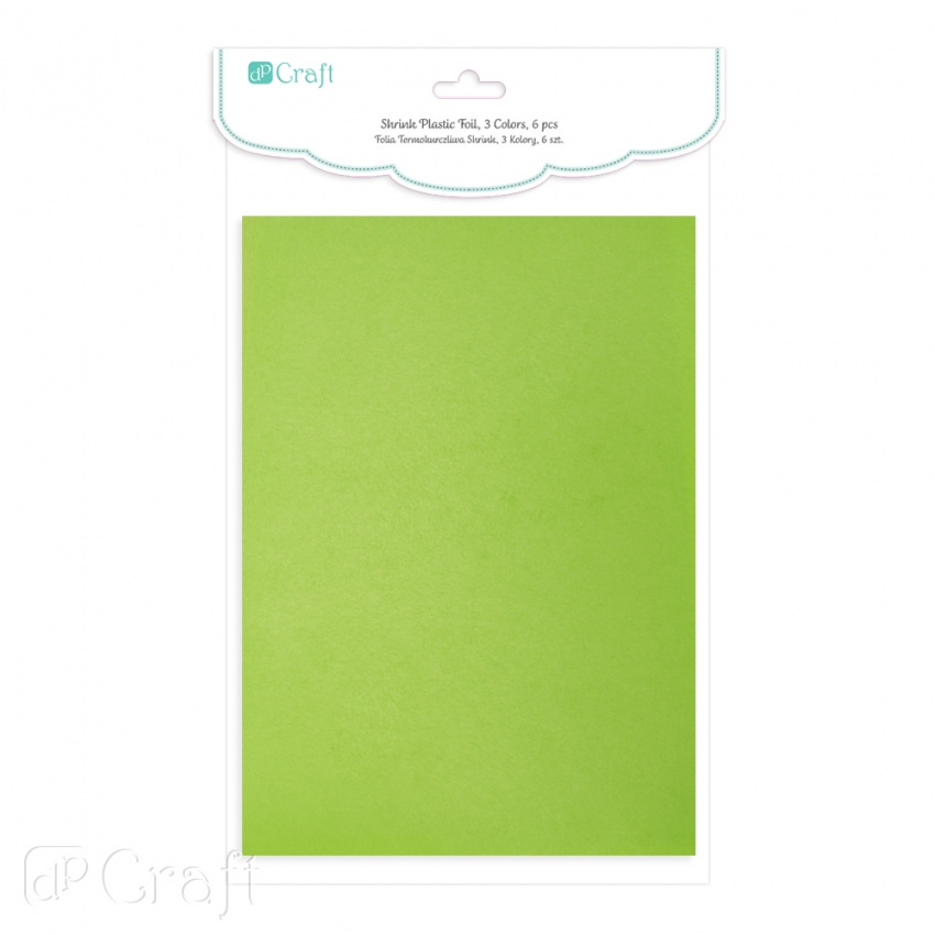 Folia termokurczliwa to doskonała baza do tworzenia oryginalnych elementów i dodatków, które mogą zostać wykorzystane w projektach typu cardmaking, scrapbooking, home decor, do tworzenia biżuterii, dodatków fashion (przypinek, zawieszek, breloczków, itp.) i wielu innych. Dzięki folii możesz stworzyć dowolne wzory, we wszystkich kolorach! Ty decydujesz jak będzie wyglądał twój element i możesz go stworzyć w kilka minut! Jak to zrobić?1. Folie kolorowe są z jednej strony matowe a z drugiej błyszczące. Przeszlifuj delikatnie matową stronę folii drobnoziarnistym papierem ściernym – dzięki temu zwiększysz przyczepność tuszów, farb, pisaków, kredek, mgiełek, itp. 2. Odbij wybrany stempel lub narysuj swój własny projekt.3. Wytnij nożyczkami przygotowany wzór. Do wycinania kształtów możesz też użyć wykrojników lub dziurkaczy.4. Tak przygotowany element umieść na papierze do pieczenia i włóż do piekarnika na 3 minuty (piekarnik nagrzany do 140-160 stopni) lub użyj uniwersalnej nagrzewnicy dpcraft. Wykorzystując nagrzewnicę połóż element z folii na specjalnym podkładzie (coś co może się nagrzewać) i przytrzymaj element patyczkiem lub pęsetą.5. W czasie nagrzewania element z folii zacznie się kurczyć i wywijać, a na końcu się rozprostuje.6. ….I gotowe! Po podgrzaniu folia twardnieje, wykonany element jest trwały. Wskazówki:1. Folia termokurczliwa, jak sama nazwa wskazuje, kurczy się. Dlatego elementy po wygrzaniu są o ok. 60% mniejsze od pierwotnego wzoru. Zwróć na to uwagę przy tworzeniu swoich projektów.2. Jeżeli przygotowany element chcesz wykorzystać jako zawieszka to przed wygrzaniem wykonaj w nim dziurkę np. Przy pomocy dziurkacza punktowego lub dziurkacza „kombinerki”. Pamiętaj, że otwór w gotowym elemencie również będzie mniejszy o ok. 60%.3. Aby osiągnąć ładny, prosty wzór, po wyjęciu z piekarnika lub wygrzaniu nagrzewnicą przyciśnij gotowy element czymś płaskim (np. Bloczkiem akrylowym lub dnem szklanki).4. Folię możemy zdobić kredkami, mazakami, markerami, tuszami, mgiełkami, itd.5. Malując/kolorując wzór warto pamiętać, że w efekcie końcowym kolory będą znacznie intensywniejsze. Kolor: niebieski, różowy, zielonyGrubość: 0,3 mmFormat: arkusz a4Ilość arkuszy w opakowaniu: 6 sztukProdukt jest nietoksyczny
