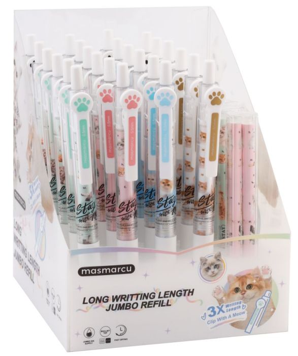 Długopis żelowy automatyczny, Cats, 0, 5mm, czarny, display 24szt + wkłady 6 etui, MG |