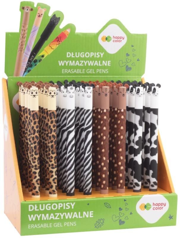 Długopis wymazywalny Uszaki Furry Safari, 0.5mm, niebieski, display 40 szt., Happy Color | DOSTĘPNE W POŁOWIE PAŹDZIERNIKA |