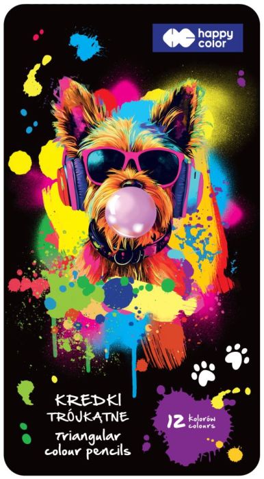 Kredki drewniane, szkolne, trójkątne, 12 kol. metal box, Happy Color | DOSTĘPNE NA KONIEC PAŹDZIERNIKA |