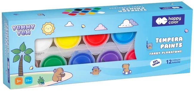 Farby plakatowe 12 kolorów x 25ml, Kapibara Kapi Fun, Happy Color |