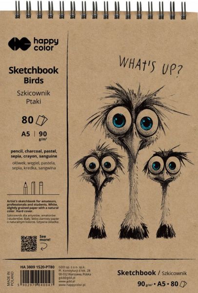 Szkicownik na spirali PTAKI A5, biały, 80 ark, 90g, Happy Color |