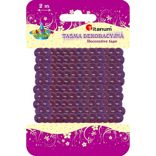 Cekiny na taśmie O6mm 2m liliowe cekiny na sznurku 2m kolor liliowy |