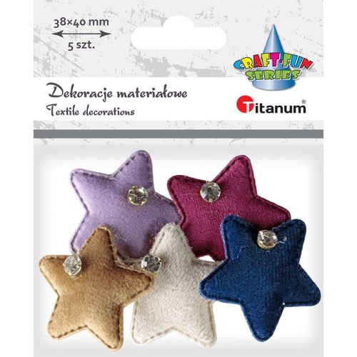 Aplikacje materiałowe gwiazdki z kryształkiem 38x40mm granatowe, ciemnoczerwone, wrzosowe, jasnobrązowe, kremowe 5szt. Aplikacje materiałowe gwiazdki 38x40 mm z kryształkiem. Kolory: granatowe, ciemnoczerwone, wrzosowe, jasnobrązowe, kremowe. Opakowanie 5 szt. |