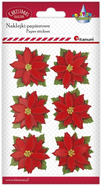 Dekoracje samoprzylepne papierowe 3D poinsecje O44mm 6szt.🌺 Naklejki papierowe 3D Titanum Craft-Fun Series – Poinsecje 6szt.