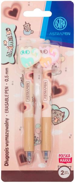 Długopis wymazywalny CLICK z gumowym uchwytem 0, 5 mm ASTRAPEN ANIMALS CHOCO - 2 szt. blister |