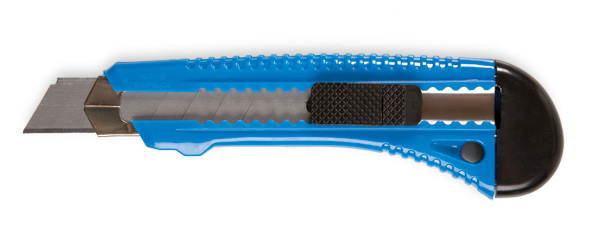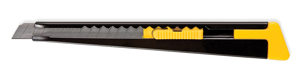 Wytrzymała przecinarka biurowa z plastikowym uchwytem i wysuwanym stalowym ostrzem. Metalowe prowadnice w rękojeści zwiększają jej sztywność. Mix kolorów.