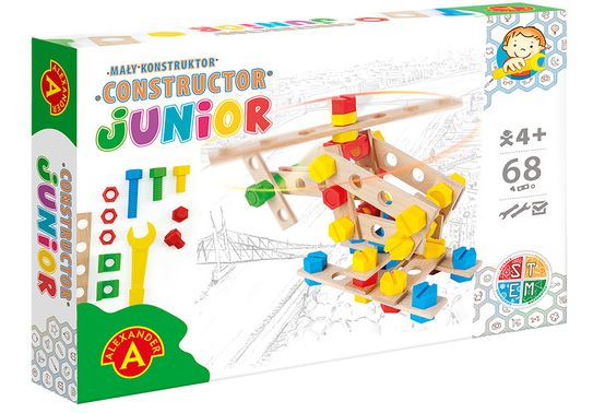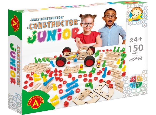 MAŁY KONSTRUKTOR JUNIOR 150 EL/CONSTRUCTOR JUNIOR 150 EL. (2564)Ponadczasowa zabawka do samodzielnego montażu skierowana do dzieci w wieku od 4 lat. Zestaw składa się z drewnianych deseczek z dziurkami oraz kolorowych śrubek i łączników z tworzywa. Duże rozmiary elementów oraz uproszczona konstrukcja sprawiają,... |