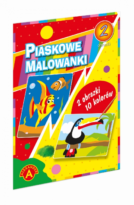 PIASKOWA MALOWANKA-RYBKA, TUKAN (1711) Artystyczna zabawa malowania piaskiem polegająca na odsłanianiu kolejno poszczególnych, naciętych elementów obrazka, tak by odkryć klejącą powierzchnię. Odsłonięte elementy posypuje się piaskiem w kolorze zgodnym ze wzorem tworząc piękną ilustrację.
