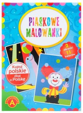 PIASKOWE MALOWANKI-KLAUN, PIRAT (1874) Artystyczna zabawa malowania piaskiem polegająca na odsłanianiu kolejno poszczególnych, naciętych elementów obrazka, tak by odkryć klejącą powierzchnię. Odsłonięte elementy posypuje się piaskiem w kolorze zgodnym ze wzorem tworząc piękną ilustrację.