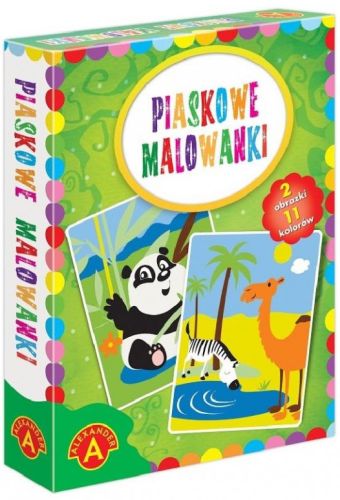 PIASKOWE MALOWANKI-MALARZ, KONIK (1879) Artystyczna zabawa malowania piaskiem polegająca na odsłanianiu kolejno poszczególnych, naciętych elementów obrazka, tak by odkryć klejącą powierzchnię. Odsłonięte elementy posypuje się piaskiem w kolorze zgodnym ze wzorem tworząc piękną ilustrację.