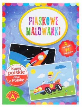 PIASKOWE MALOWANKI-POCIĄG, SAMOLOT (1881) Artystyczna zabawa malowania piaskiem polegająca na odsłanianiu kolejno poszczególnych, naciętych elementów obrazka, tak by odkryć klejącą powierzchnię. Odsłonięte elementy posypuje się piaskiem w kolorze zgodnym ze wzorem tworząc piękną ilustrację.