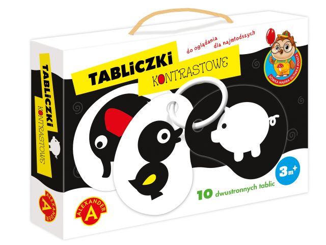 TABLICZKI KONTRASTOWE-SÓWKA MĄDRA GŁÓWKA W (1788) Zabawka jest zbiorem ilustracji dla najmłodszych dzieci (od 3 miesiąca). Demonstrując dziecku obrazki oparte o proste kształty i zdecydowane kontrasty rodzice wspomagają rozwój percepcji dziecka, związanej w tym wieku z określaniem granic obiektu i postrzeganiem... |