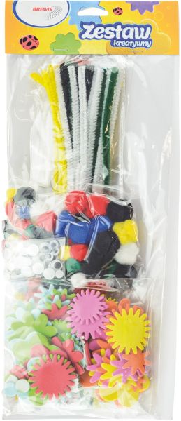 Zestaw kreatywny średni zawartość: pompony - 39 szt naklejki z pianki - 36 szt ruchome oczy - 20 szt druciki kreatywne - 20 szt |