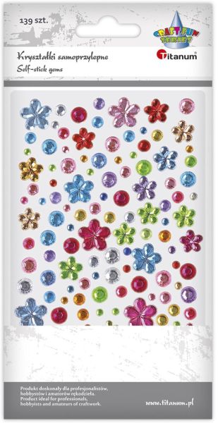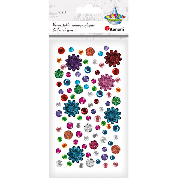 Kryształki samoprzylepne mix kwiatki, okrągłe, kwadraty mix kolorów 141szt. |