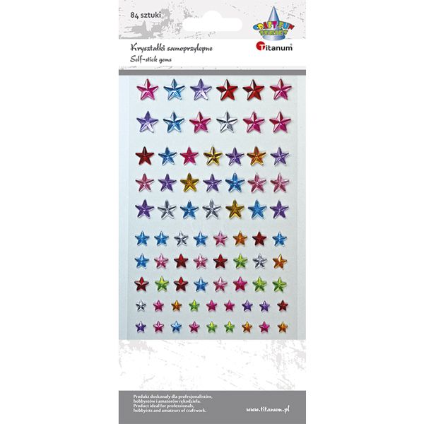 Kryształki samoprzylepne gwiazdki mix kolorów 11/10/8/5mm 84szt.Kryształki samoprzylepne. Wzór: gwiazdki, mix kolorów i rozmiarów. 84 sztuki. |