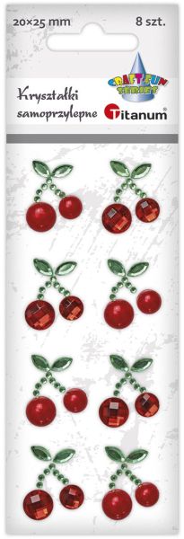 Kryształki samoprzylepne gałązka z 2 wiśniami 20x25mm 2 wzory - kryształki i perełki 8szt.Kryształki samoprzylepne, wzór: gałązka z 2 wiśniami, wymiary: 20 x 25 mm, 2 wzory - kryształki i perełki. 8 sztuk. |
