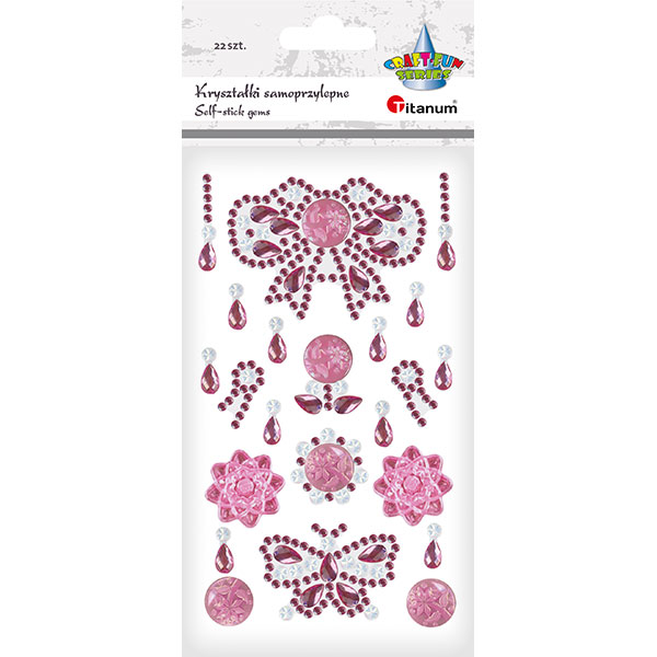 Kryształki samoprzylepne kokarda 67x47mm, motyl 46x33mm, kwiat, biżuteria mix rozmiarów różowo-białe 22szt. |
