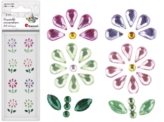 Kryształki samoprzylepne kwiaty 13x21mm mix kolorów 8szt. TITWLK26 |
