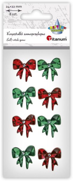 Kryształki samoprzylepne kokardki 22x22mm czerwone, zielone 8szt. |