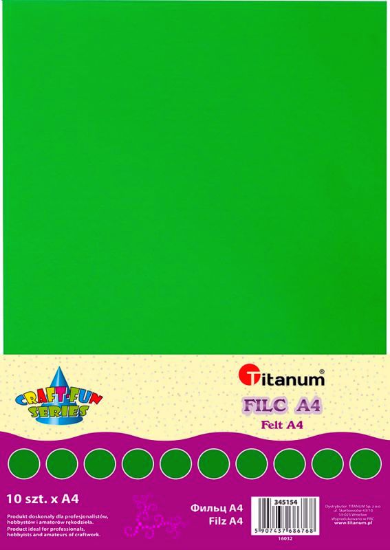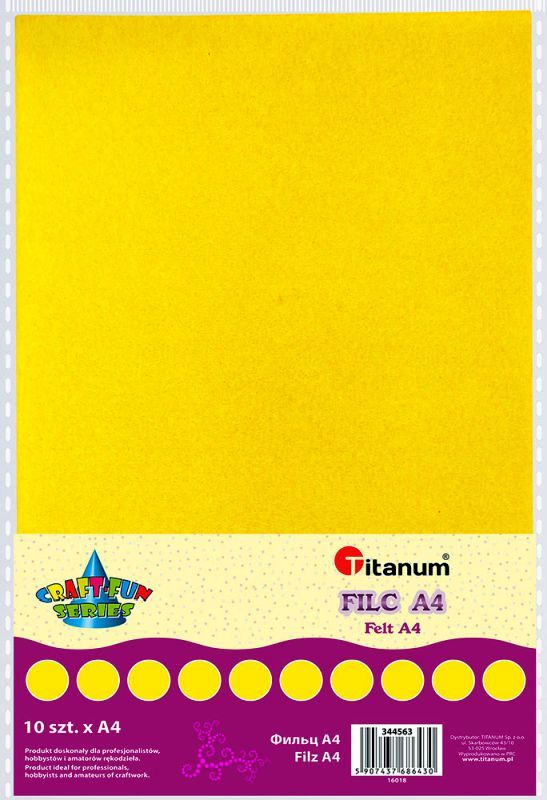 Filc A4 2mm 200g 10szt. żółty TITWLK26 Miękkie arkusze kolorowego filcu w formacie A4.