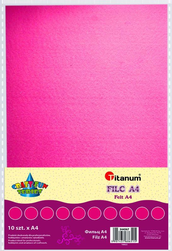 Filc A4 2mm 200g 10szt. różowy TITWLK26 Miękkie arkusze kolorowego filcu w formacie A4.