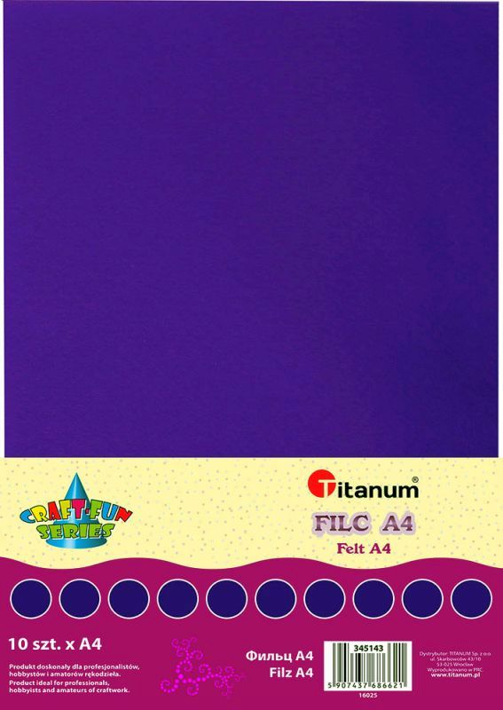 Filc A4 2mm 200g 10szt. fioletowy Miękkie arkusze kolorowego filcu w formacie A4.