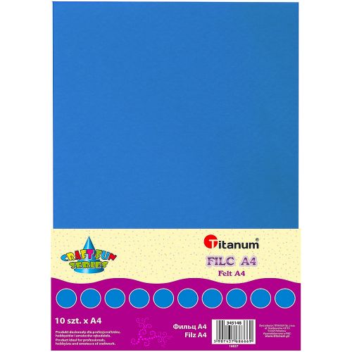 Filc A4 2mm 200g 10szt. niebieski Miękkie arkusze kolorowego filcu w formacie A4.