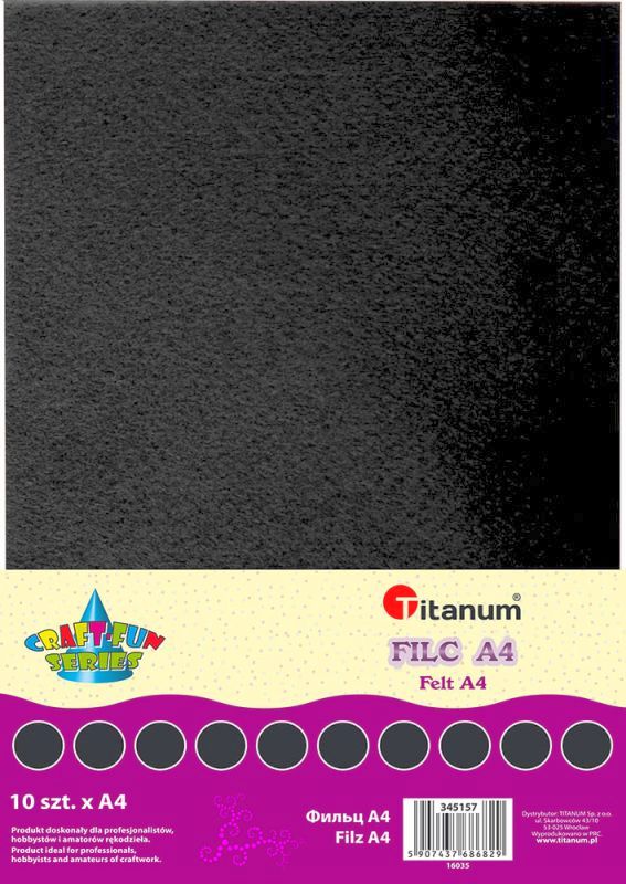 Filc A4 2mm 200g 10szt. czarny Miękkie arkusze kolorowego filcu w formacie A4.