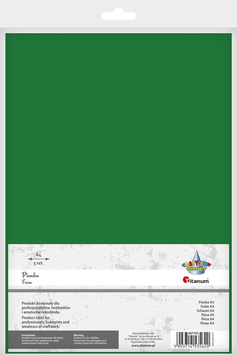 Pianka A4 5szt. ciemnozielonaPianka dekoracyjna, format A4, ciemnozielona. 5 sztuk. |