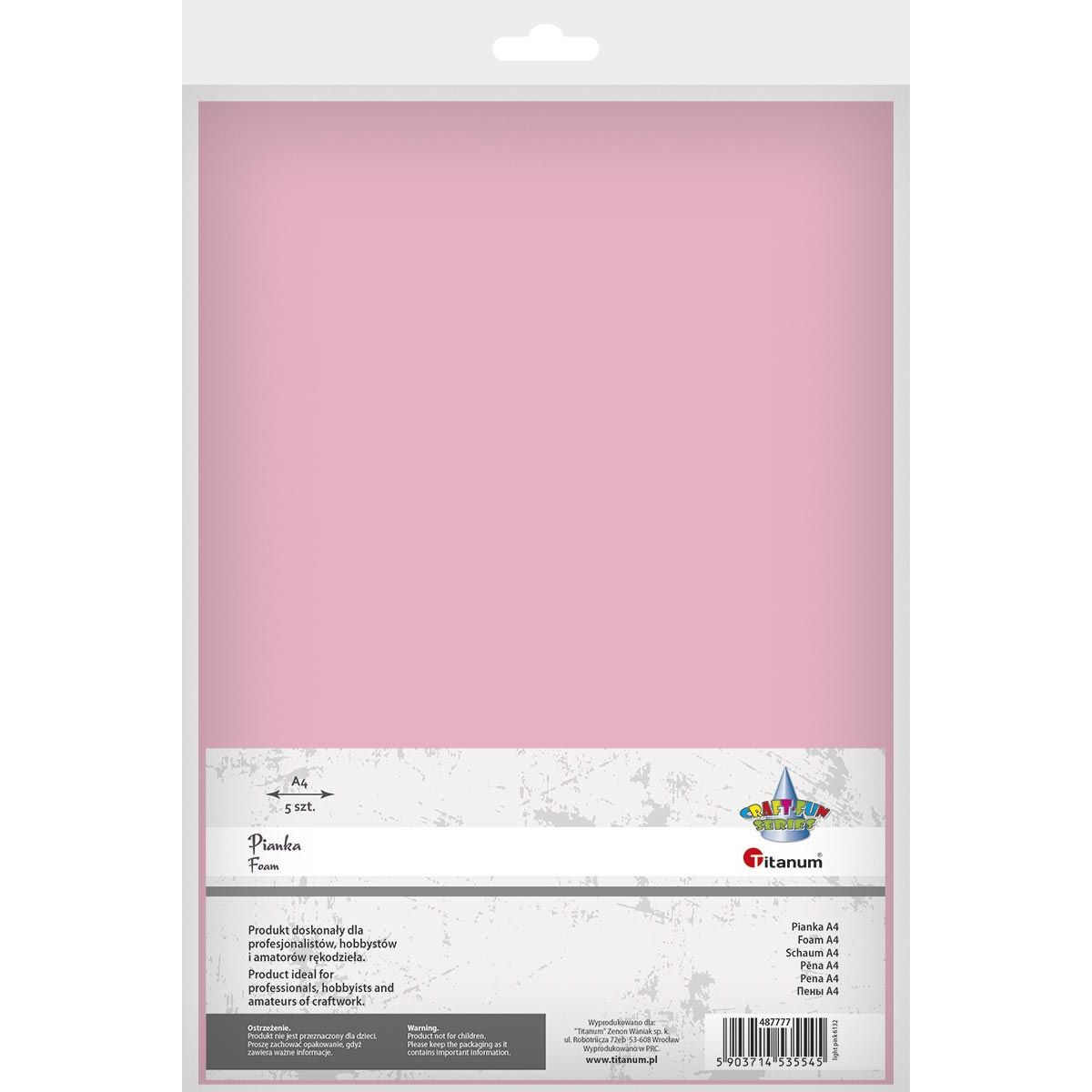 Pianka A4 5szt. jasnoróżowa TITWLK26Pianka dekoracyjna, format A4, jasnoróżowa. 5 sztuk. |