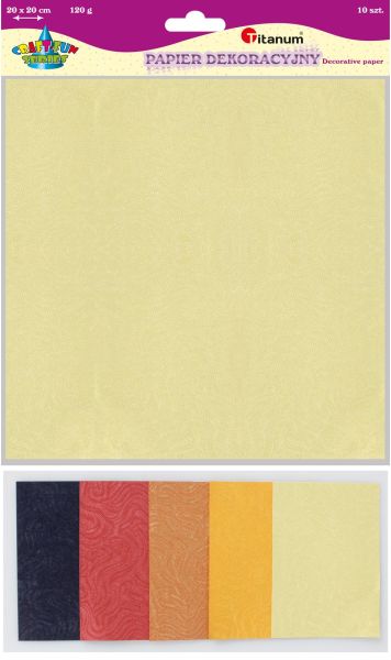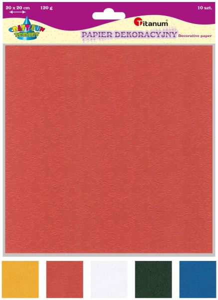 Papier dekoracyjny tłoczony struktura Rock 20x20cm 120g 5 kolorów 10szt.Ozdobne, tłoczone papiery 120 g barwione w masie. Każde opakowanie zawiera 10 arkuszy w 5 kolorach (po 2 arkusze z koloru). Struktura: rock, wymiar arkusza 20 x 20 cm. |