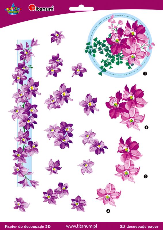 Papier do decoupage 3D kwiaty clematis 1 arkusz papier do decupage 3D, 22003 |