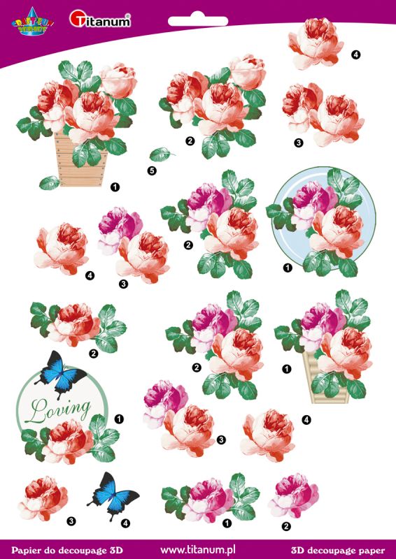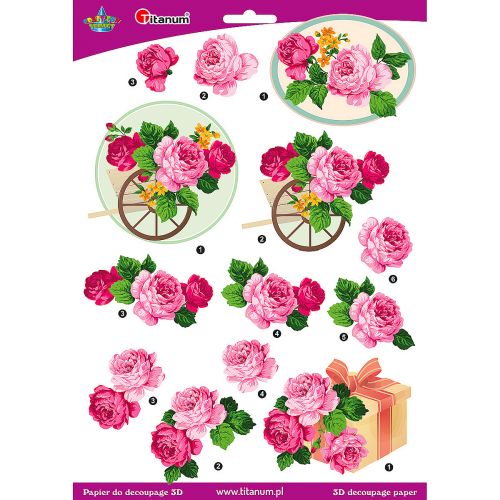 Papier do decoupage 3D kwiaty róże 1 arkusz papier do decupage 3D, 22004 |