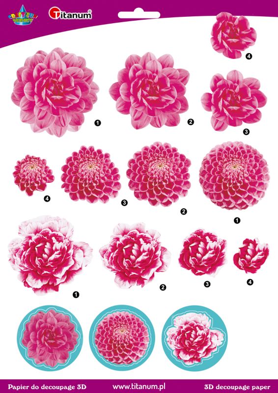 Papier do decoupage 3D kwiaty dalie 1 arkusz papier do decupage 3D, 22005 |