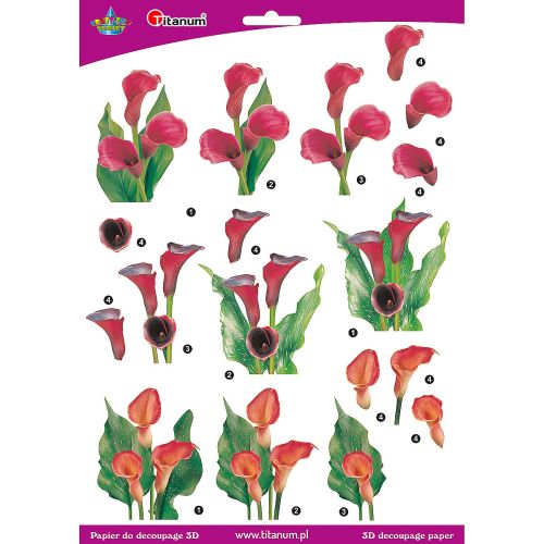 Papier do decoupage 3D kwiaty kalie 1 arkusz papier do decupage 3D, 22007 |