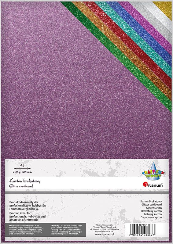 Karton brokatowany A4 10 kolorów 250gKarton brokatowany 250g, format A4, 10 kolorów. |