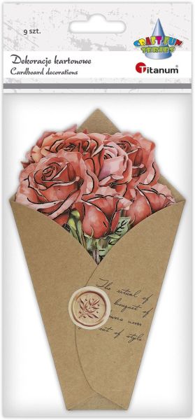 Dekoracje kartonowe Flower Letter róże różowe ze złotym wykończeniem 8szt. + koperta z kartonu kraft TITWLK |