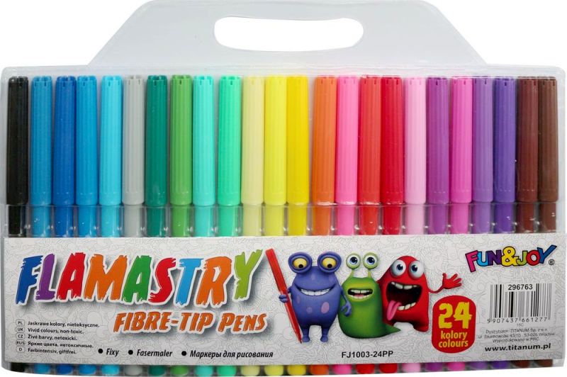FLAMASTRY 24 KOL. FJ1003-24PP Zestaw różnokolorowych łatwospieralnych flamastrów.