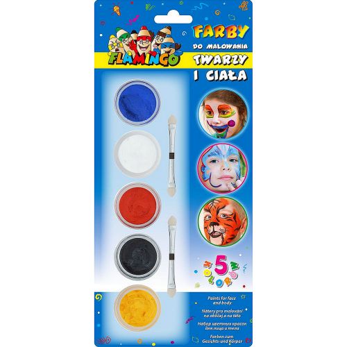 Farby do malowania twarzy duże 5 kolorów Zestaw 5 farb do makijażu twarzy i ciała. Bezpieczne, nie podrażniają skóry. Usuwalne za pomocą kosmetyków do demakijażu. Proste w użyciu. W zestawie aplikator z gąbeczką do wygodnego nakładania farb. Świetnie sprawdzą się podczas imprez urodzinowych,... |
