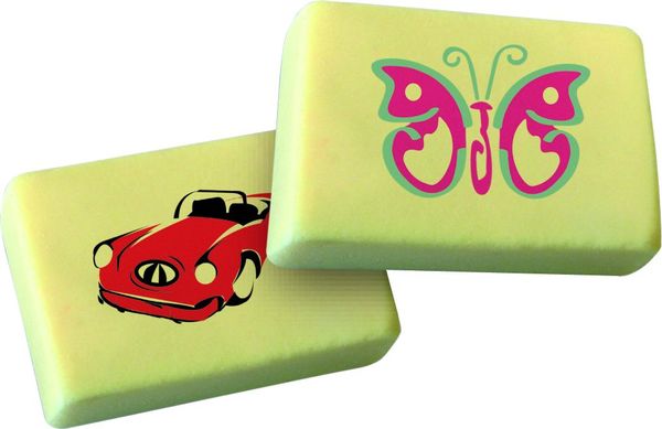 GUMKA DO MAZANIA 32/NAD T21532Mała prostokątna gumka w kolorze żółtym. Idealna dla dzieci. Na gumce kolorowy nadruk: motylek lub auto.Nie niszczy ścieranej powierzchni. Nie pozostawia smug i zabrudzeń. Przeznaczona do stosowania na papierze i folii. |