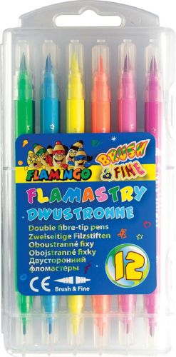 Flamastry dwustronne ?Brush x Fine? 12 kolorów końcówka precyzyjna i pędzelkowa typu brushKomplet 12 dwustronnych flamastrów. Każdy flamaster ma dwie końcówki: cienką oraz pędzelkową. Elastyczna końcówka pędzelkowa umożliwia regulowanie grubości linii poprzez zmianę siły nacisku, dzięki czemu flamaster doskonale nadaje się do kaligrafii... |