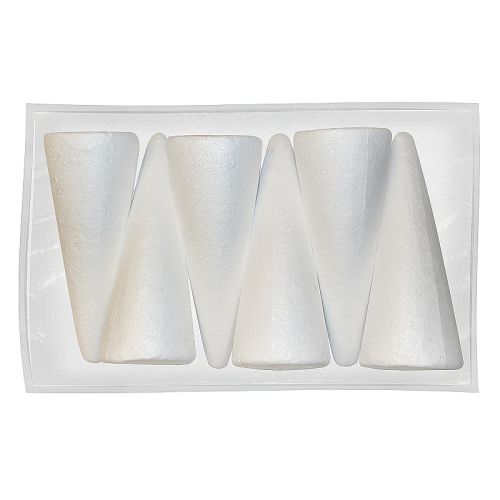 Stożek ze styropianu. Wysokość: 200 mm. 6 sztuk.