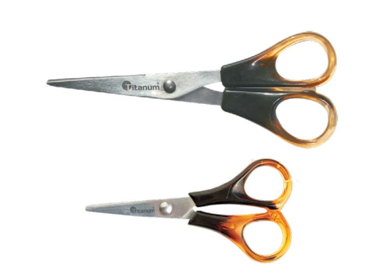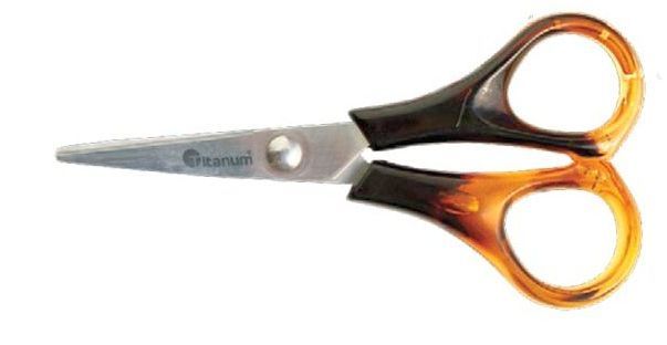 NOŻYCZKI S04003 BURSZT.12CM- plastikowy uchwyt w kolorze bursztynowym - regulowana śruba z nakładką - ostrze z nierdzewnej stali - długość ostrza: 40 mm - długość nożyczek: 120 mm - blister |