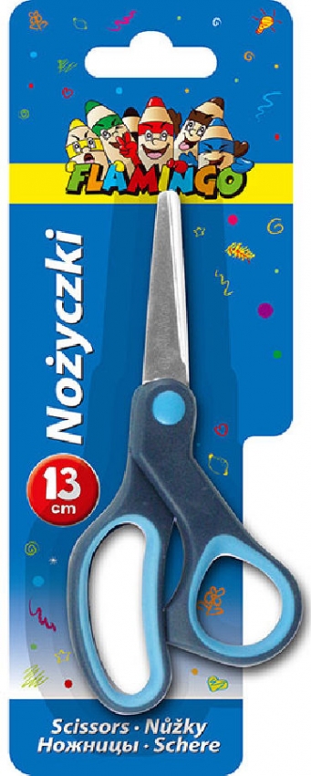 NOŻYCZKI FLAMINGO 13CM ergonomiczny, gumowy uchwyt, bezpieczeństwo użytkowania podnoszą zaokrąglone ostrza (353901, 353900), nożyczki do użytku szkolnego, biurowego i domowego, dostępne w trzech rozmiarach: 13 cm, kolor uchwytu: błękitno-niebieski |