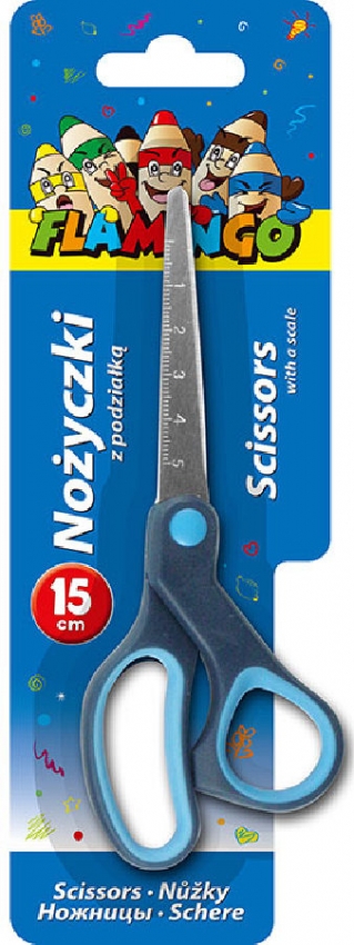 NOŻYCZKI FLAMINGO 15CMErgonomiczne nożyczki, z gumowym uchwytem. Zaokrąglone ostrza. Długość ostrza: 7 cm, długość nożyczek: 15 cm. |