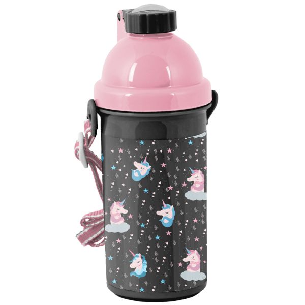 Bidon dziecięcy PASO UNICORN BLACK PP22UN-3021 Bidon o pojemności 500 ml z regulowanym i odpinanym paskiem na szyję, przeznaczony do napojów o temperaturze max 60o C. Produkt posiada certyfikat jakości- jest nietoksyczny i bezpieczny dla dzieci , BPA FREE500 ml |